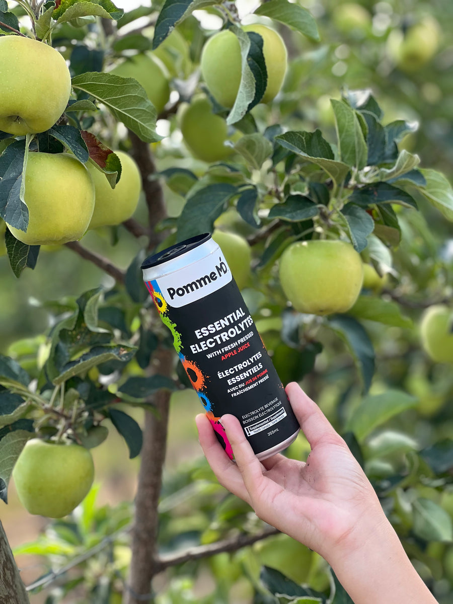 PommeMD is a hydration beverage made with REAL apple juice, from Orchard Pressed Apples. We've added the essential electrolytes to help you Hydrate Better - without ANY artificial colours, dyes or sweeteners.
